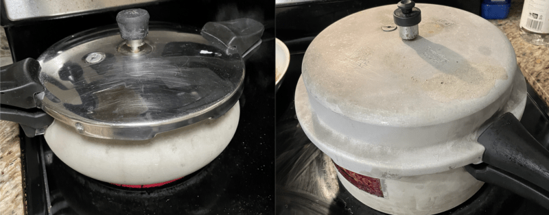 Same deal as before: put on the cooker’s lid and whistle; set the heat to medium-to-high on the stove; and wait for at least 2 whistles of the cooker.