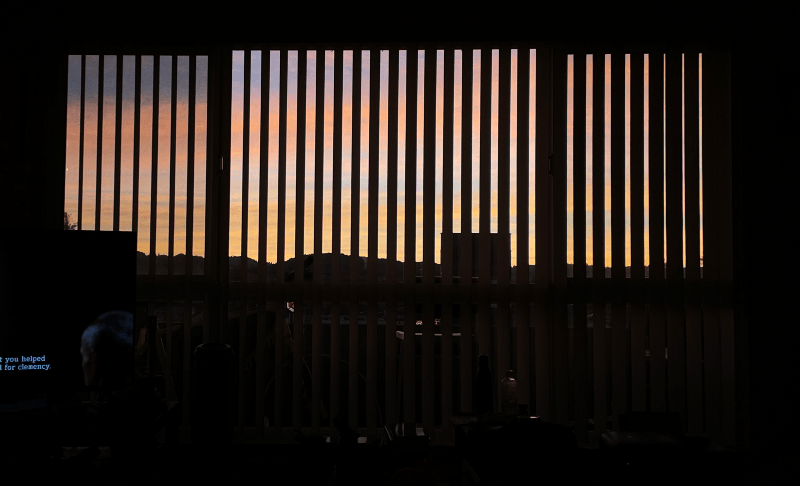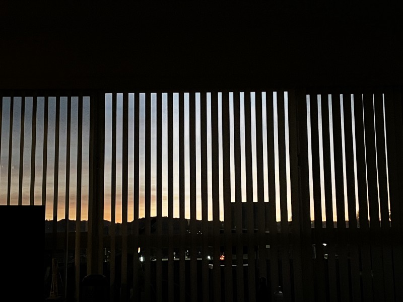 This past weekend, I was feeling too cold to witness one such sunset. So instead, I opened the blinds in my living room and enjoyed some dusky hues from the warmth of my apartment. And to make things interesting, I was playing with my iPhone camera’s exposure setting, which allowed me to capture vivid colors of the sunset, with the blinds in my living room offering a dark contrast.