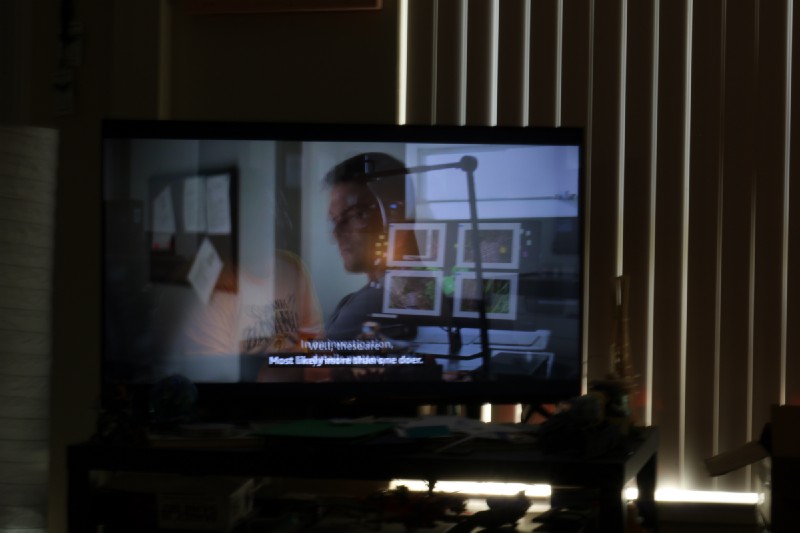 Next, I dialed down the shutter speed and pointed it straight at my TV, and got this melded shot of Jack Reacher playing on Amazon Prime. Jack looks good!