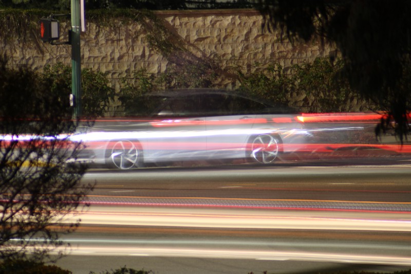 At relatively shorter speeds like with 2 seconds, you are still left with an apparition of the moving vehicle. The headlights and taillights though tend to become very, very wavy. I am sure there is a lesson in optical mechanics lurking in here somewhere.