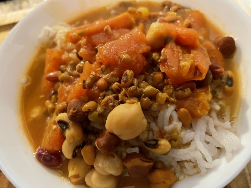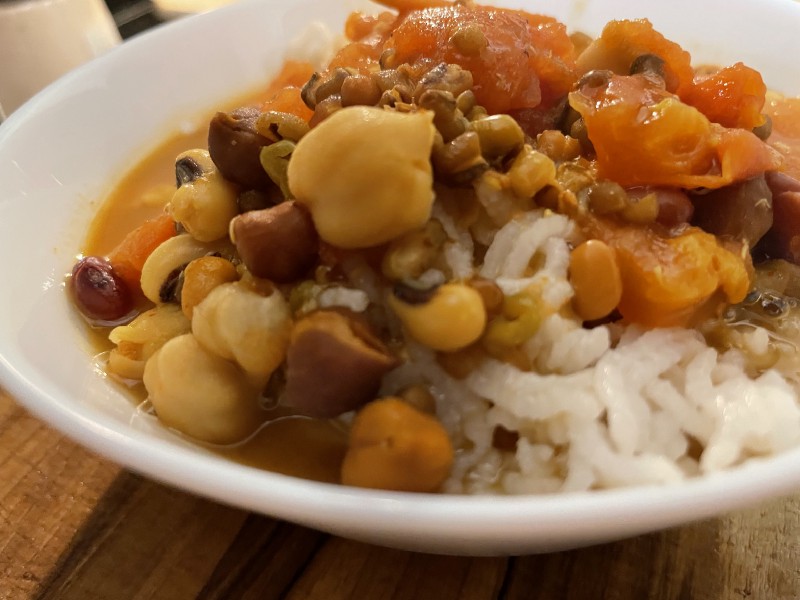 Dinner is served: Nine Lentil Mix on a bed of Rice!