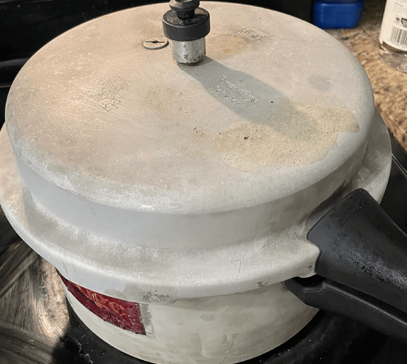 Meanwhile, after about 6–7 whistles of the pressure cooker, I turned off the heat on the cooker, and opened it up to see if it had cooked. Yep! I overcooked the lentils! But then again, I was no longer in any danger of giving me or my wife a tummy ache because of accidentally undercooked beans. (The threat is real.)