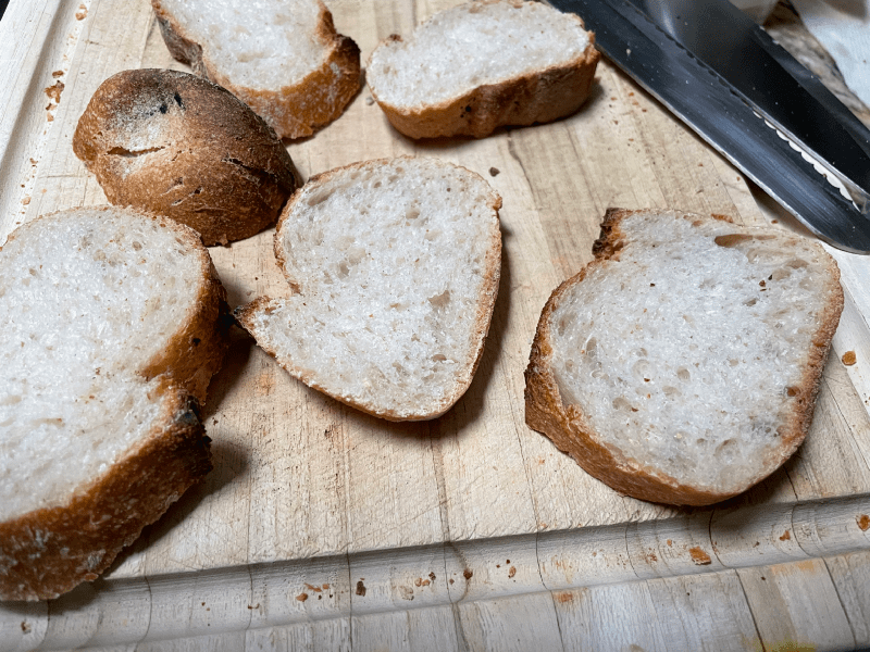 What if … I had the slices of egg on slices of baguettes? We usually reserve these slices of sourdough baguettes for bruschetta (again something that Shruti excels at preparing).