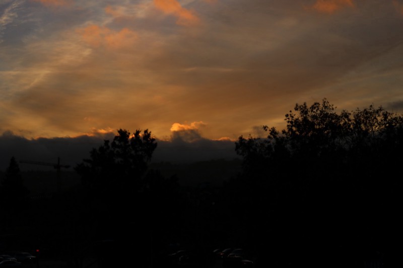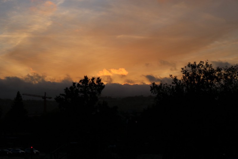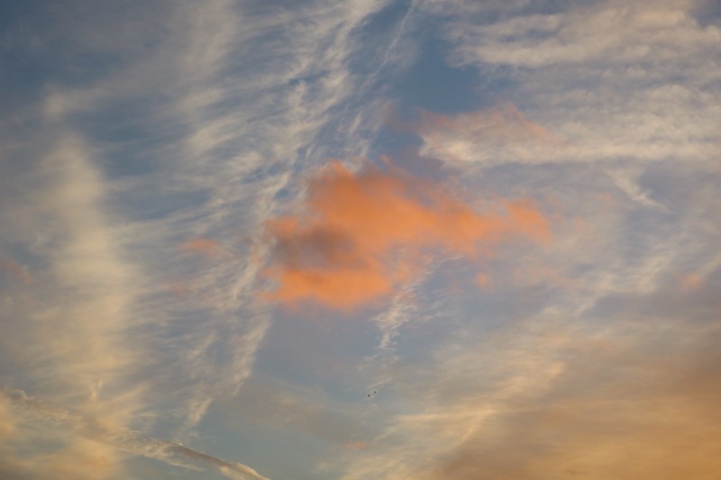 Moving beyond those gloomy/not-so-gloomy parallels, I captured some beautiful shots of orange clouds. The one below really stood out to me. It was like that solitary cloud was on fire, against an otherwise peaceful blue and white sky …
