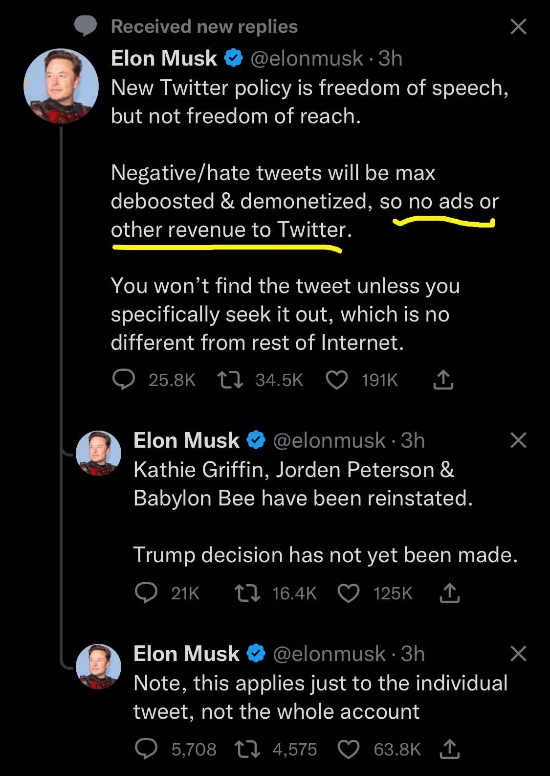Elon continues to prove himself to be an idiot everyday. But this freedom of speech vs reach is just about as stupid an idea that I have ever seen.