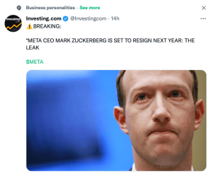 Just saw a tweet drop that suggested that Zuck was going to resign from Meta!