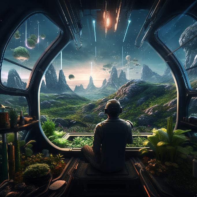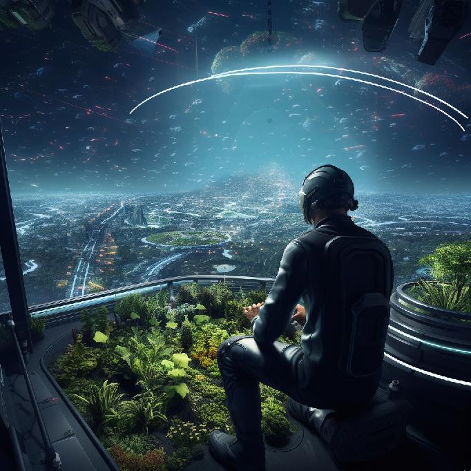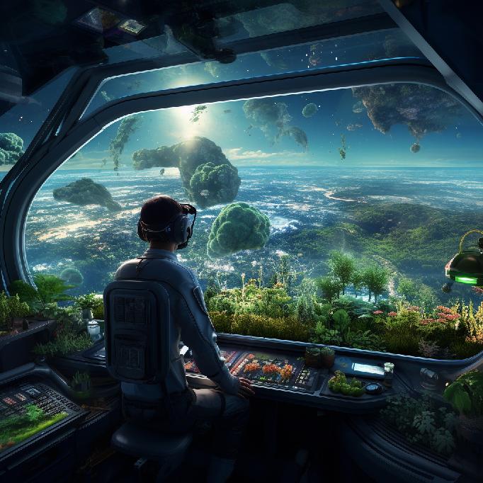Midjourney Prompt: /imagine a farmer in space, looking over his crops, the crops are growing inside a futuristic spaceship. Futuristic, sci-fi, digital art, hyper detailed.