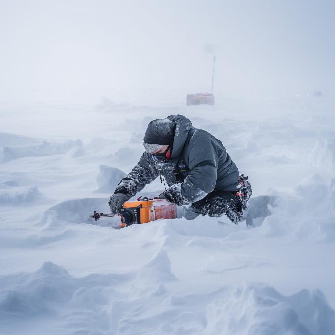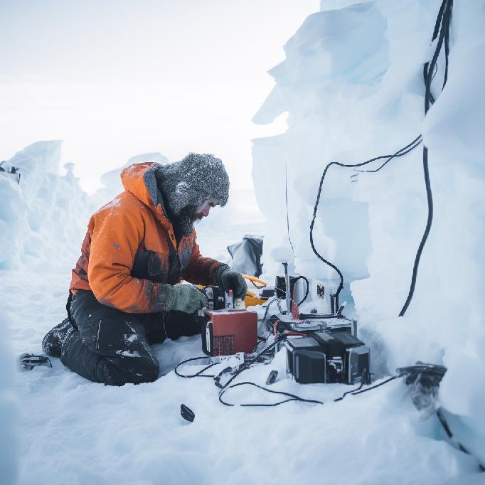 “a geologist working out of a base in Antarctica, in a middle of a blizzard, digging up ice samples to study the impact of atmospheric carbon on the climate.”
